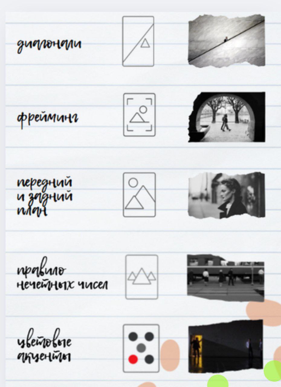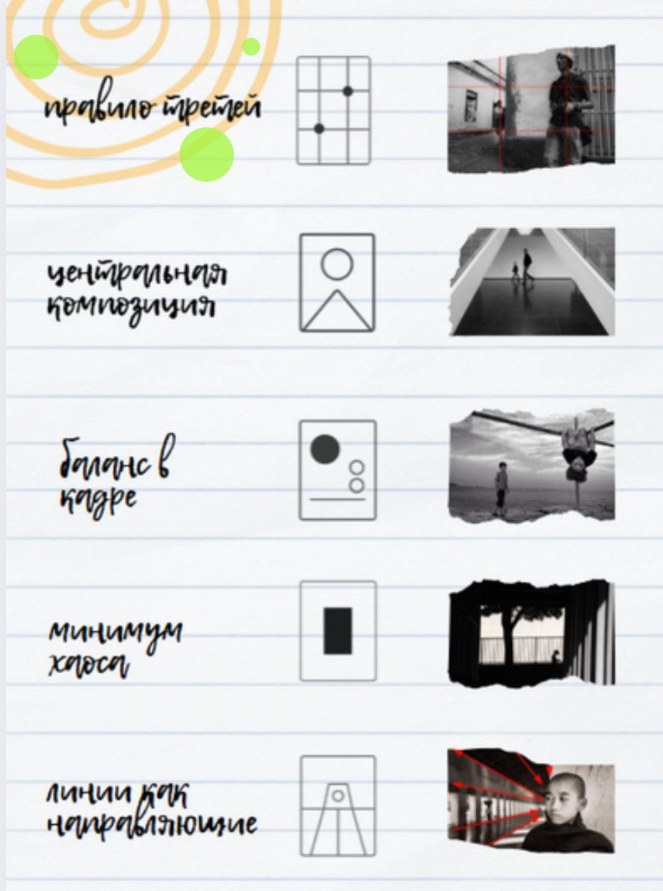 Цель: развить умение строить кадр с использованием линий и направлять взгляд зрителя.