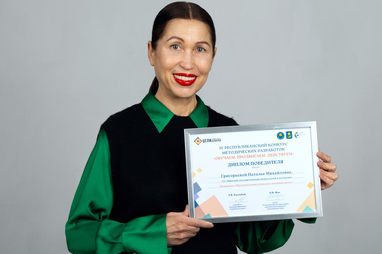 Дипломом победителя IV Республиканского конкурса методических разработок «Обучаем. Продвигаем. Действуем» в номинации «Образовательный социально-значимый проект» награждена Григорьева Н.М., методист Минского государственного дворца детей и молодежи - координатора городского проекта «Школьный медиацентр»🏆