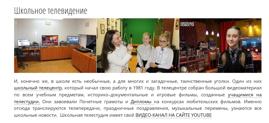 2000-е — 2010-е: переход к цифровым форматам, появление школьных видеостудий и сайтов — С распространением интернета и видеооборудования многие школы начинали собственные сайты, видеостудии и регулярные медиа-проекты; сведения фиксируются на сайтах отдельных школ и в городских методических порталах (примеры — отдельные гимназии и школы с собственными медиаформатами).
