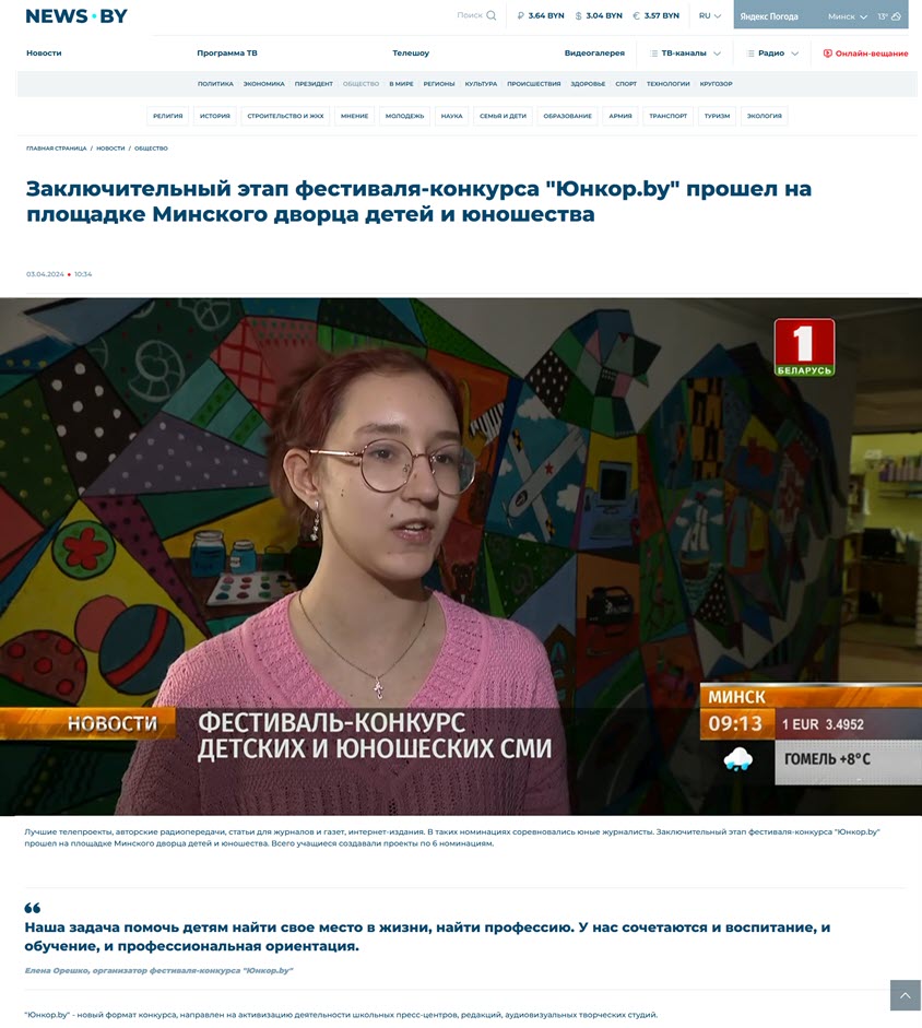 03.04.2024 Заключительный этап фестиваля-конкурса "Юнкор.by" прошел на площадке Минского дворца детей и юношества