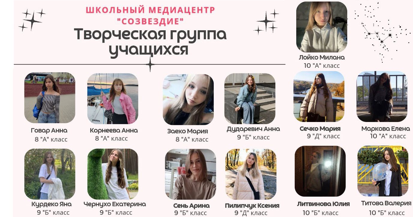 Особые слова благодарности — руководителю медиацентра Алесе Николаевне Кухта, которая сумела вдохновить ребят, собрать креативную команду мечты 🌠 и объединить вокруг нее активную группу поддержки. 👏