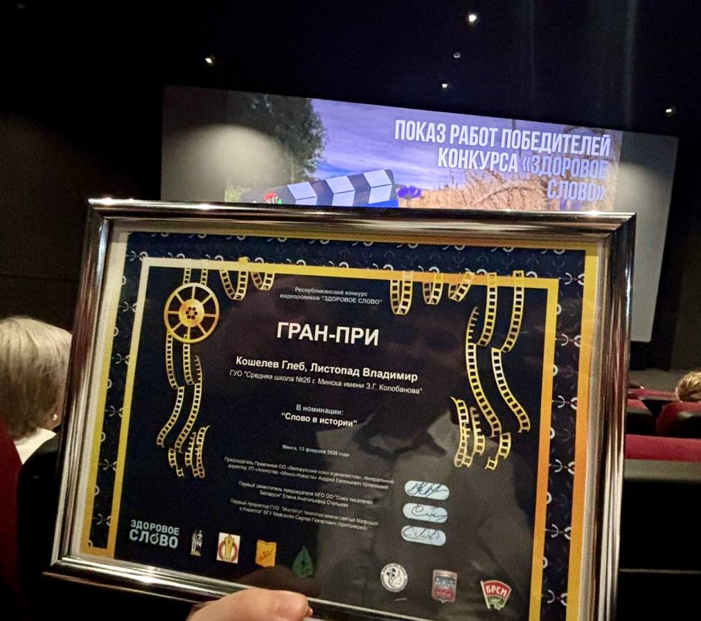 Медиацентр «Ветразь» ГУО «Средняя школа № 26 г.Минска имени З.Г. Колобанова» стал не только финалистом, но и обладателем ГРАН-ПРИ республиканского конкурса видеороликов «Здоровое слово»! 🏆✨