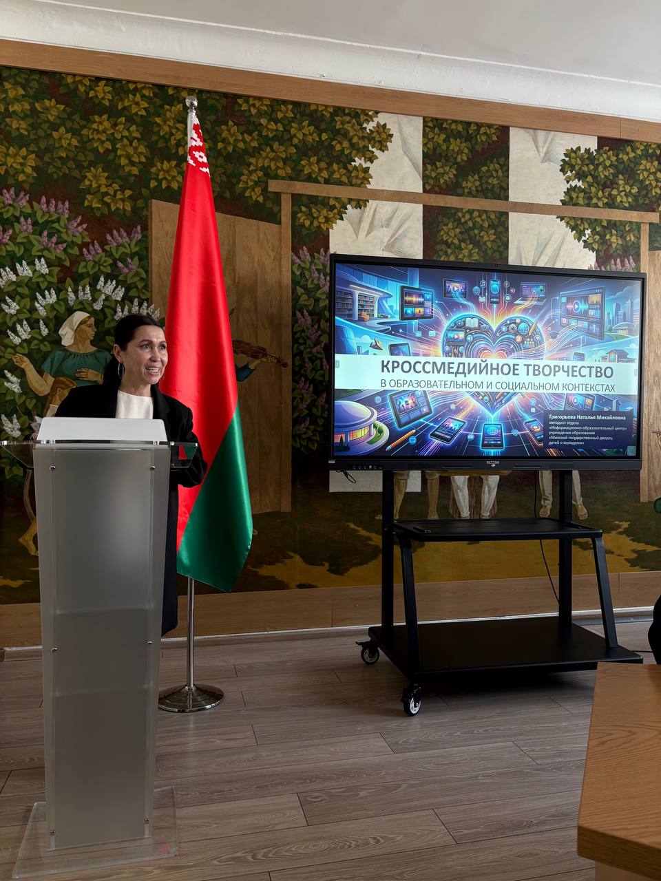 Григорьева Н.М., методист УО «Минский государственный дворец детей и молодежи», представившая доклад «Кроссмедийное творчество в образовательном и социальном аспектах»