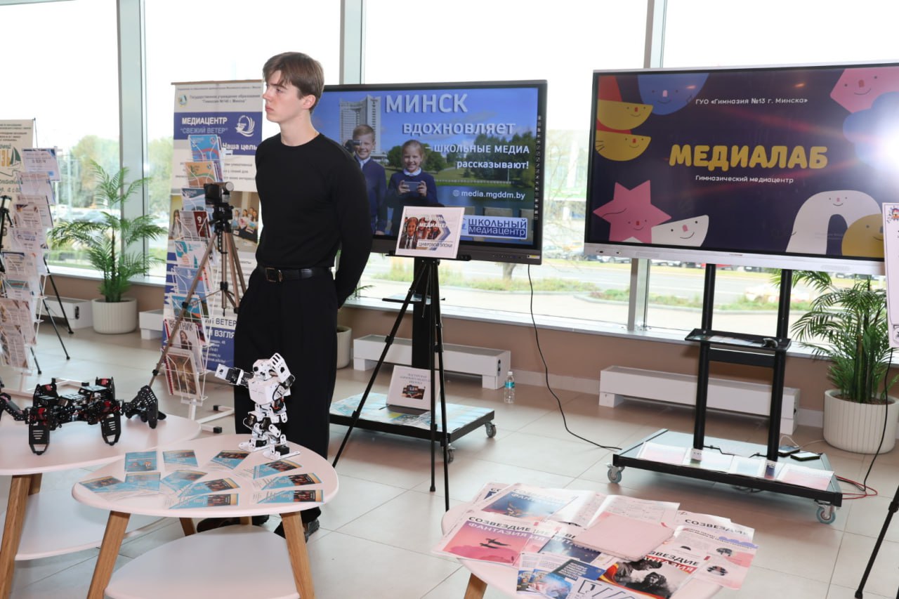 Медиацентры «РанакМедиа» ГУО «Центр дополнительного образования «Ранак» г. Минска, «Ветразь» ГУО «Средняя школа №26 г. Минска имени З.Г. Колобанова», «Свежий ветер» ГУО «Гимназия №146 г. Минска», «МедиаЛаб» ГУО «Гимназия №13 г. Минска», а также представители координационного центра городского проекта «Школьный медиацентр» приняли участие в выставке «Образование: Вчера. Сегодня. Завтра.»