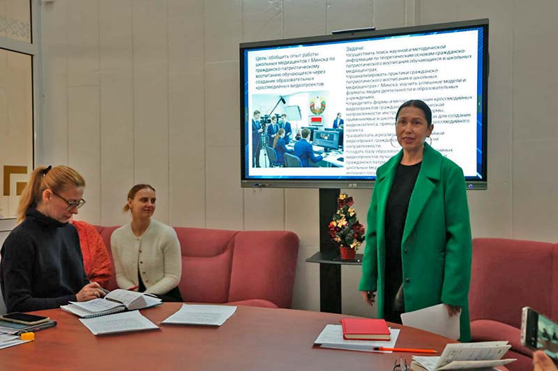 Тема доклада — «Результаты освоения образовательной программы стажировки руководящих работников и специалистов в государственном учреждении образования „Минский городской институт развития образования“ по теме "Особенности организации работы по гражданско-патриотическому воспитанию обучающихся через создание кроссмедийных видеопроектов в образовательном пространстве школьного медиацентра"».